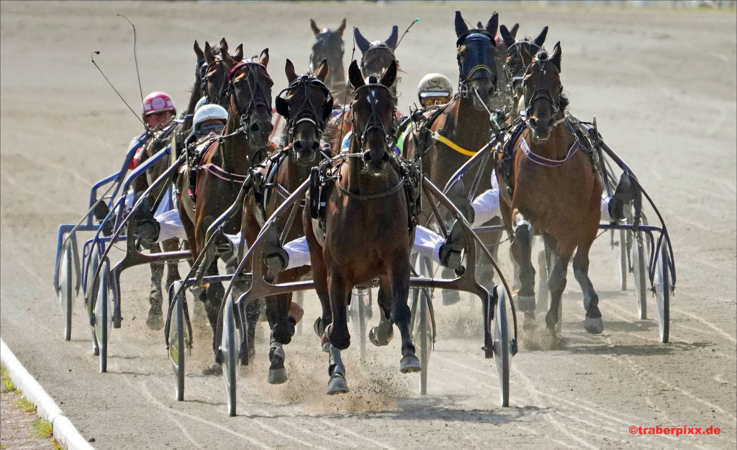 Der Lauf der Gold-Serie steht exemplarisch dafür: Zwölf Pferde treten an und nicht weniger als zehn von ihnen sind bei optimalem Verlauf als Sieger denkbar. Denn das Rennen wird aus drei Bändern gestartet und in dem zu erwartenden Gerangel um die besten Positionen ist kaum etwas kalkulierbar. An der 2.500-Meter-Grundmarke werden sich Postillion (Peter Platzer), Yucatan Diamant (Josef Franzl), der zuletzt großartige Blizzard PS (Dennis Spangenberg) sowie WalkofFame Diamant (Thomas Panschow) versammeln. Sie haben etliche Erfolgstypen im Nacken, die ihre 20-Meter-Zulage rasch wettmachen werden. Noah Newport (Jim Veldman) und Waldgeist (Robbin Bot) belegten im sechsten Lauf der Serie auf exakt derselben Distanz die Plätze eins und zwei. Intinori (Thomas Heinzig) hatte zwar ein Formtief zu verkraften, verkaufte sich zuletzt aber wieder deutlich besser. Villeneuf (Michael Nimczyk) und Sir Robert (Thorsten Tietz) mischen stets vorne mit. Force of Nature gehört auf jeden Tippschein. Nicht nur, weil mit Jaap van Rijn ein ausgesprochener Könner in seinem Sulky sitzt, sondern weil der erst vierjährige Hengst vermutlich die größte Klasse im Feld besitzt.